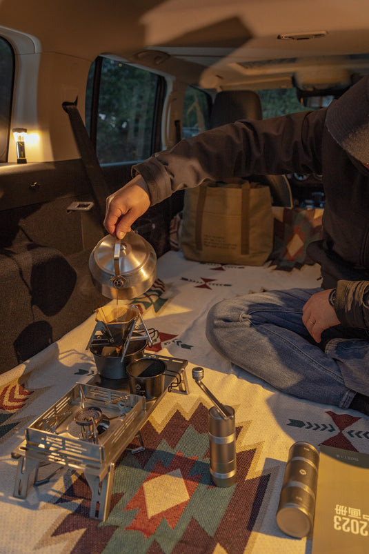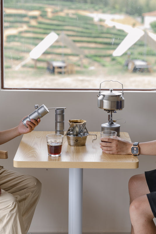 A slim canister that holds approximately 80g of coffee beans. The two-tiered container allows you to carry coffee powder and coffee beans in one container.