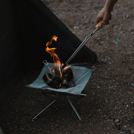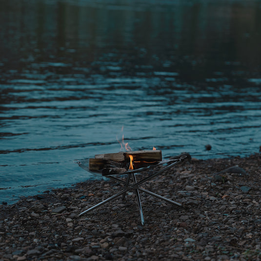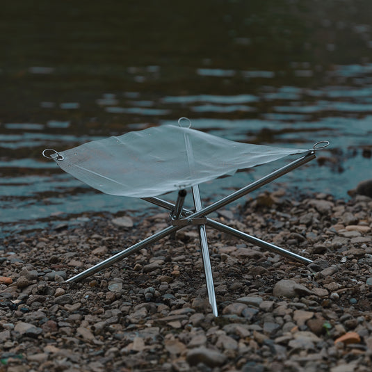The low style structure has been reduced in height from the usual 36cm to 29cm, making it possible to use it in conjunction with Tripod and many other commercially available bonfire stands.