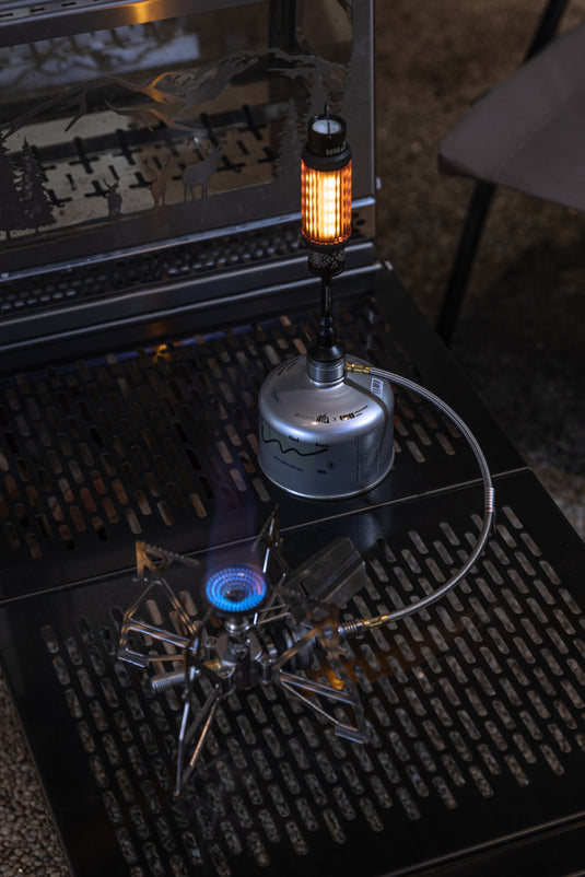 USE CANISTER INVERTED By using attached circle holder, you can use gas fuel canister in an inverted position to get more power and improve cold-weather performance.