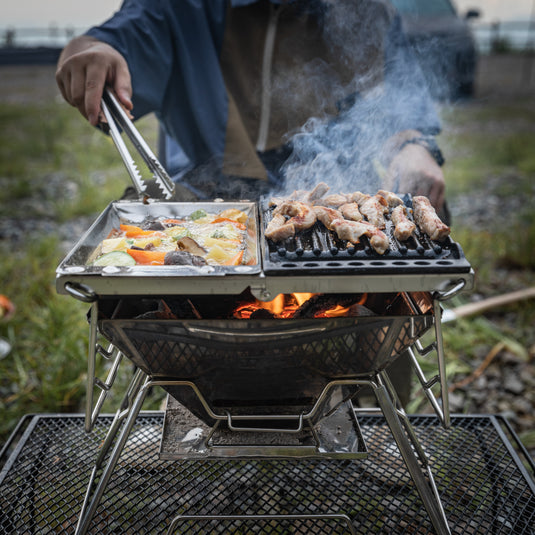 Charcoal tray: stainless steel material, outdoor use to keep the surrounding environment clean, not easy to burn to the outdoor lawn