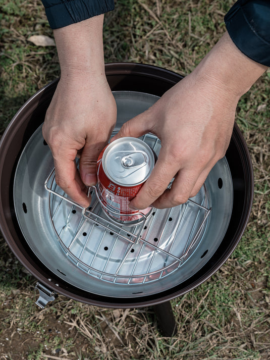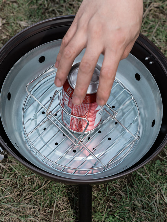 This beer can chicken roaster BBQ-19 is used to make beer can chicken. Beer can chicken is a dish in which half the amount of beer is put in a can, which is then steamed and grilled.