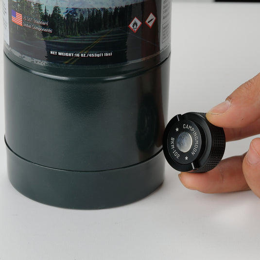 The duralumin material is machined and anodized for durability. The cap protects the gas cylinder outlet, is user-friendly, and has a sleek black finish. The knurled surface provides a textured, anti-slip pattern for better usability and performance.Usage scene