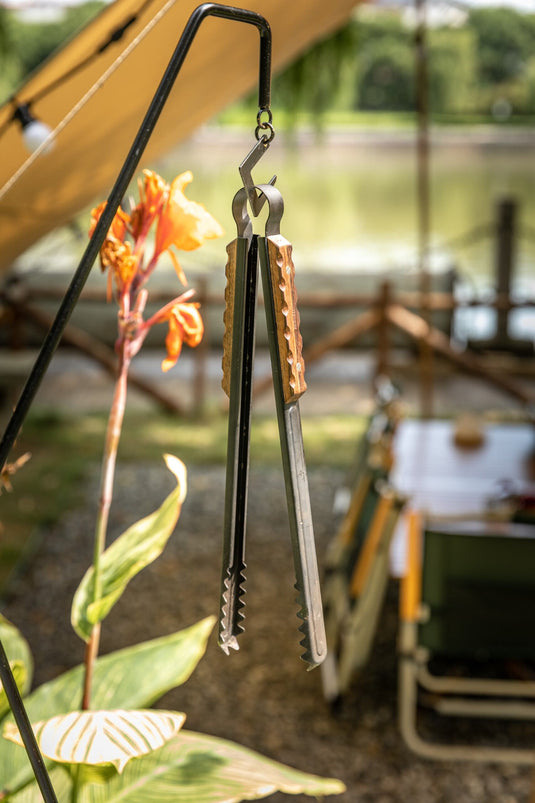 V-shaped fire scissors made of rosewood with a blackening finish.