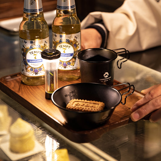 USED AS A MEASURING CUP/COFFEE CUP etc... As CAMPINGMOON sierra cup has measurement markings in the interior, you do not need another measuring cup for your instant food. You can also use CAMPINGMOON sierra cup as a coffee cup, soup bowl etc... as you need. You can put a burner directly in it and put the trivet or pot on it. The Sierra cup acts as a windshield, making cooking smoothly in windy areas.