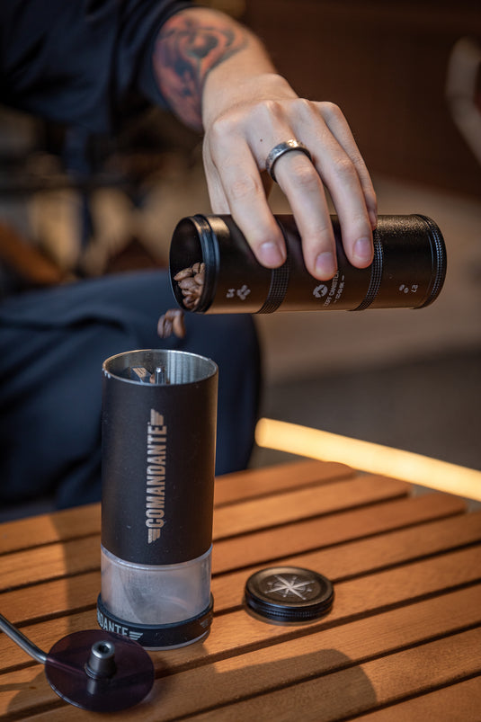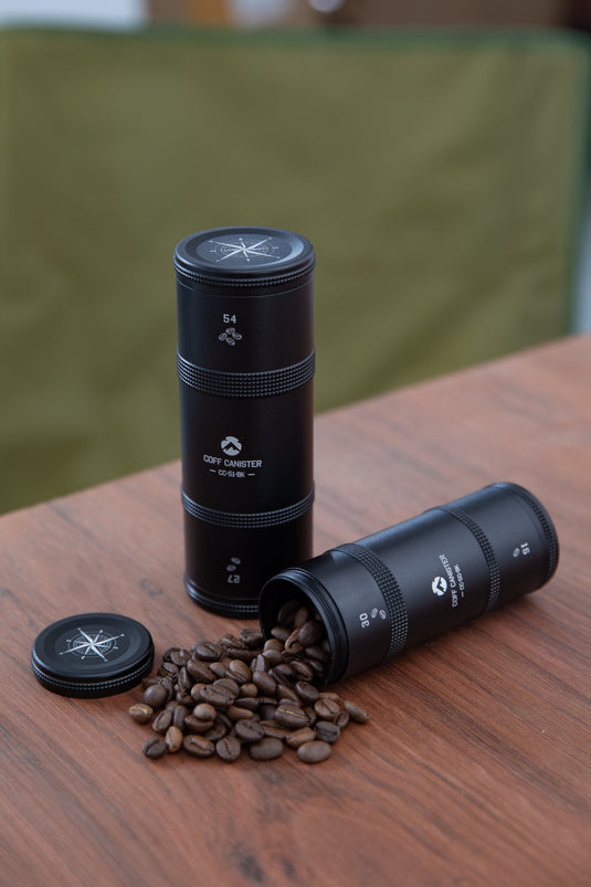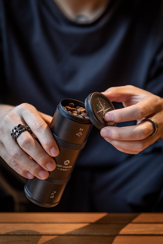 A mini canister that holds approximately 45g of coffee beans. The two-tiered container allows you to carry coffee powder and coffee beans in one container.