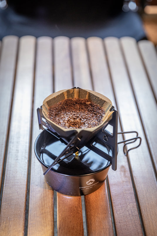 304 stainless steel has a slightly high thermal conductivity, so you can drink a cup of hot & fresh coffee even in outside with this camping coffee maker.