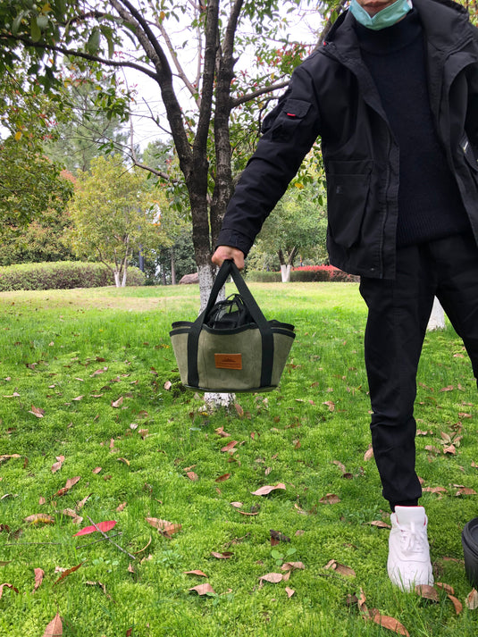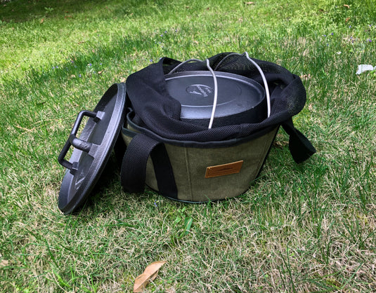 HANDLE & DRAWSTRING With a handle & drawstring for secure and convenient opening and closing. You can put up to 10 inch Dutch oven in it. (Note: Please check the dimensions first before purchasing.)