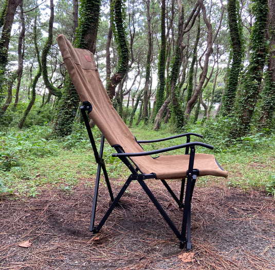 NICELY CURVED BACK This chair has a nice bent shape in back, when you’re seated and provides comfortable back support. The seat height is a low style of about 14''/36cm, and more suitable for enjoying a bonfire than other high back chairs.
