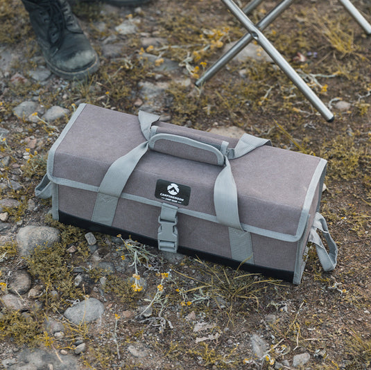 - CAMPINGMOON's camping multi container storage bag has three sizes in length, ideal for storing camping gear such as tent stakes/pegs, butane/isobutane gas fuel canister, rope, mini kettle, mugs, small fordable camping table and other camping gear.