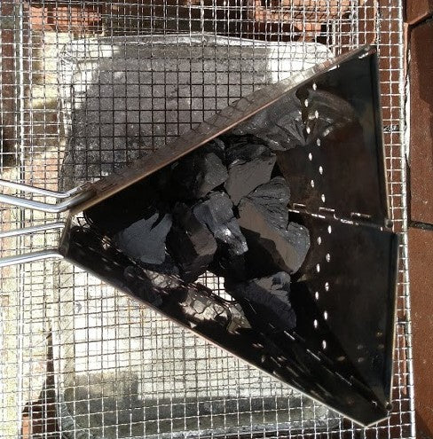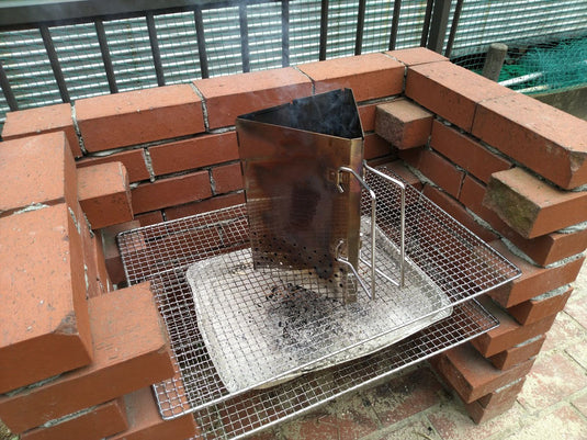 HOLES FOR TORCH & AIR A hole is designed for torch to light charcoal. Numerous air intakes enhance the chimney effect.