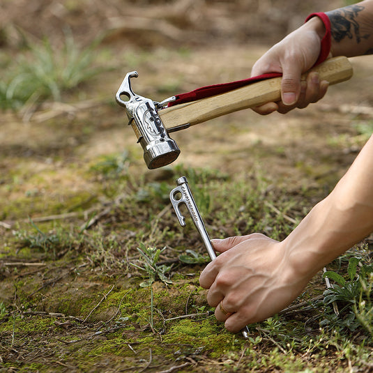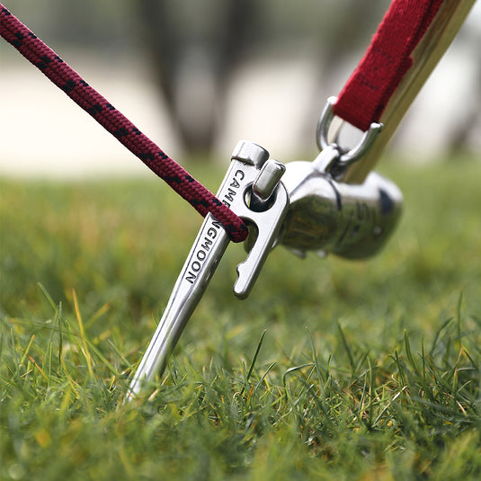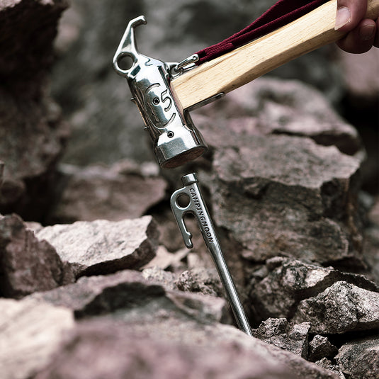Anti-Shedding Design: When the hooks stick to the ground, the stake will not rotate and prevent rope from falling out. 2. The round hole is designed to allow the peg hammer hook to be hung just right.Can also be used for rope attachment. 3. Oval column head with oval column shape, flat and easy to start. The pulling direction of the rope is designed with a thick material, so it can withstand the strength of the rope.