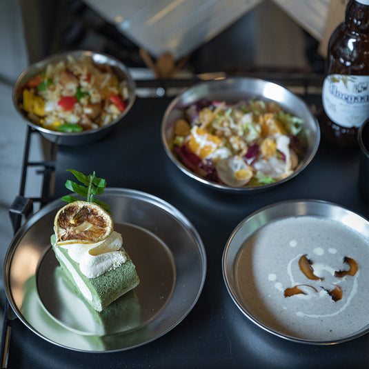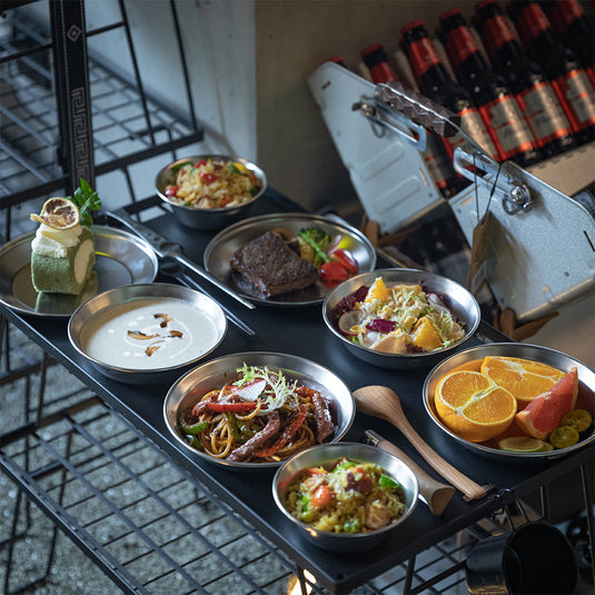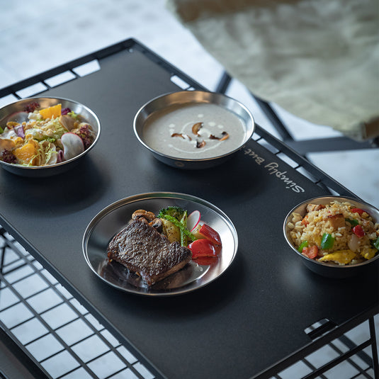 CAMPINGMOON 4pcs set Camping Plates Stainless Steel Dishwasher Safe Kitchenware S395-1S