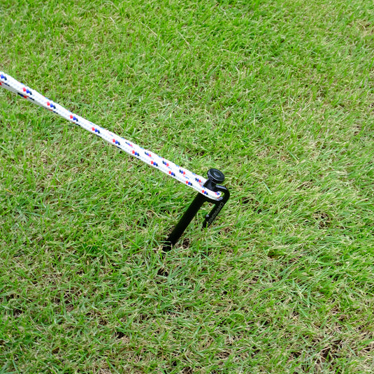 ROUND HOLE & PROTRUSION You can use hammer’s claw or tent stake remover to pull it out from the ground quickly. Avoid the rope falling off when the wind blows. Stays firmly in place to keep you safe in a wide range of weather and soil conditions.