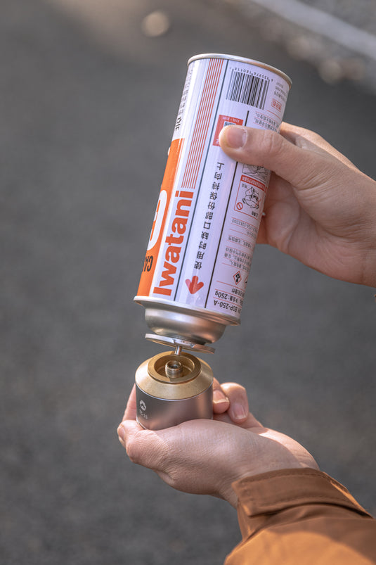 Turn the container (tank) upside down so that the gas filling valve faces upward, and insert the stem of the CB can straight into it to fill it with gas. *Insert the nozzle of the cylinder vertically into the gas inlet and press firmly. At this time, make sure to accurately align the cylinder nozzle with the tank's gas inlet. *Filling will be completed in approximately 8 to 35 seconds (please avoid filling for more than 35 seconds). *Work outdoors, away from fire, and stand upwind. Don't forget to check that there are no people around. *As you fill the gas, liquid gas will gush out from the gas filling bubble, so use this as a guide to finish filling. (Gas leakage during filling is normal, as is the case with other products, but if you are concerned, we recommend purchasing the dedicated adapter "Multi Adapter Z11/Z15" separately.) *Please note that gas containers are, in principle, not allowed to be carried on board aircraft, so carrying them on board, checking them in, or transporting them by airmail will be considered unacceptable.