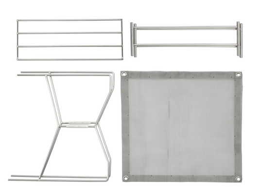 STAINLESS STEEL MATERIAL The stainless steel fire mesh has good air passage and efficiently sends air to the firewood. The stainless steel fire mesh is difficult to get rusty and has better durability than chrome iron.