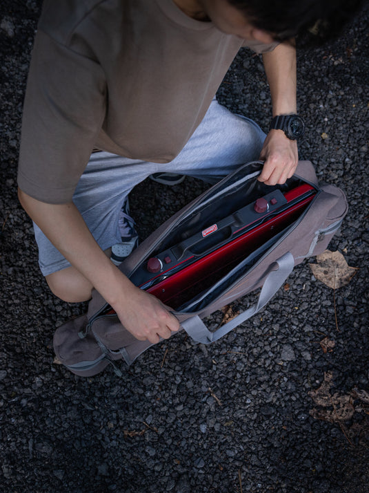 Thick padded handle This burner's storage bag has wide handles with a padded grip.