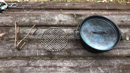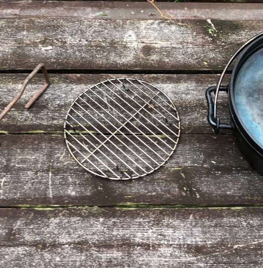 Stainless steel round cooking net for 12 inch Dutch oven.