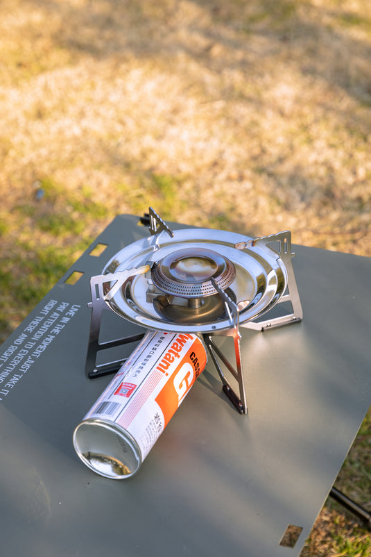 5.5kW Output when using isobutane mixed gas. Perfect for cooking large meals quickly and efficiently while camping, backpacking, or on outdoor expeditions.